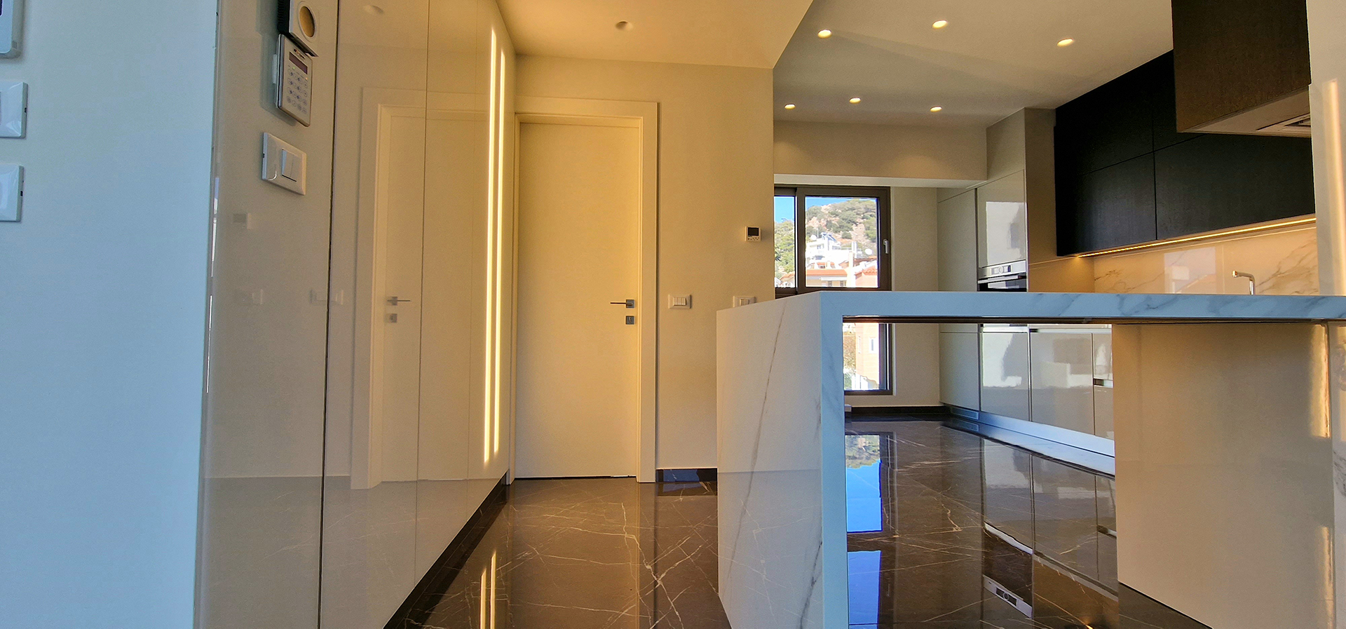 Ο σχεδιασμός τύπου Open Plan, σε συνδυασμό με τις μίνιμαλ αρχιτεκτονικές γραμμές και τον μοντέρνο εξοπλισμό του αναδεικνύει το ακίνητο σε έναν υπέροχο χώρο ευεξίας καθ’ όλη τη διάρκεια της ημέρας.